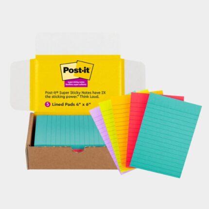 Post-it Super Sticky Lined Notes, 5 Sticky Note Pads, 4 x 6 in